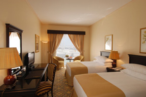 Dar Al Taqwa’s rooms are decorated in soft colours and feature large windows, some of which overlook the Prohpet Masjid. Each room has satellite TV and a well-stocked minibar with free items.